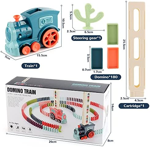 FIRE BULL Domino Train Toy Set 180 Pcs, Kids Electric Domino Train Set Building and Stacking Toy, Automatic Domino Train Set with Kids Boys and Girls Ages 3-12 (Blue/Batteries Not Included