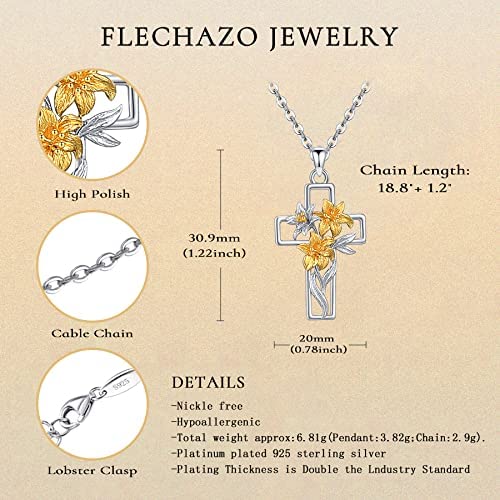 ♥ SIZE AND MATERIAL ♥ Adjustable 925 sterling silver cross pendant necklace, length : 18.8”+1.2” ; weight : 6.8g. Plating thickness is double the industry standard,hypoallergenic platinum palted plated sterling silver, nickel and lead free.