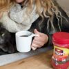 Folgers instant coffee crystals can be mixed with hot water or milk