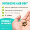 Tested and Verified Mushrooms: FreshCap Ultimate Mushroom Complex contains potent extracts of 6 powerful mushrooms: Lions Mane, Reishi, Chaga, Cordyceps, Maitake and Turkey Tail. Our mushroom extracts are analytically tested and scientifically verified to contain greater than 29% beta-glucans, which are the beneficial compounds you’re looking for. We use whole mushroom fruiting bodies with no filler, mycelium, extra starch or grains.