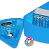Bite-size game comes with coloured dice, cards and easy-to-carry wedge case.