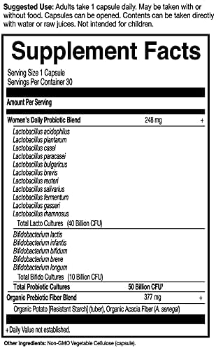 PROBIOTICS FOR WOMEN: Specially formulated probiotic for women’s specific health needs contains L. reuteri and L. fermentum for vaginal health