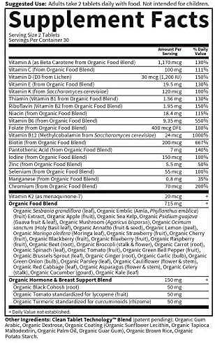HORMONE SUPPORT mykind’s vegan multivitamin for women includes vegan D3, Organic Black Cohosh, Tomato and Turmeric for hormone and breast support