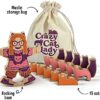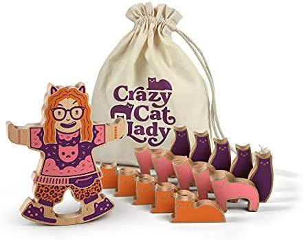 If it fits, I sits! Fred’s Crazy Cat Lady is the go-to game for those with an affinity for felines. Your goal is to stack and balance the most cats on the wobbling lady without them toppling over. Finally, a situation where you can keep adding cats, and no one can tell you there’s too many! Each set is made of solid beechwood and includes 1 crazy cat lady base, 15 cats, and a muslin storage bag. Packed in a colorful display box. Concept by Timothy Haynes, design By Dan Savoie, Fred Studio.