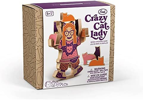 Fred’s Crazy Cat Lady stacking game is packed in a quality kraft display box with a full color band. This wooden stacking game makes a great gift for all occasions, and all cat lovers!