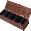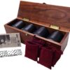 American-made hand-crafted Black Walnut Case made in USA with brushed brass closure, brass accents & brass hinges. Measures 15-1/4″ x 4-7/8″ x 4-1/2″. No-scratch felt bottom for protection of the case and your table. Our domino cases are American-Made by experienced woodworkers. All domino sets are assembled in the USA.