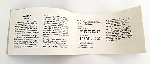 Includes 20 white dice that come in a burgundy velveteen draw-string pouch. Includes instruction book with dice games.