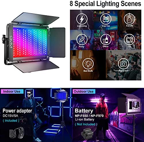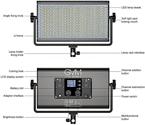 AC/DC Power Options & Aviation Grade Materials: GVM 1500D video lights support AC adapter (included) when shooting indoors, or NP-F550 NP-F970 Li-ion battery power supply (battery not included); Made of excellent quality aluminum alloy with excellent heat dissipation; U-mount bracket enables the photographers to adjust the lighting angle; Attaching barn doors make light sources create a beam spread of light; Comes with a white diffuser to soften the harsh light.