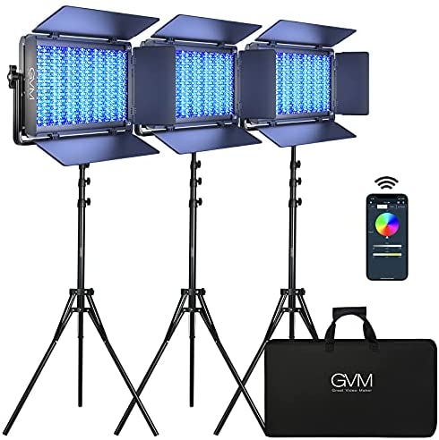 GVM 1500D RGB LED Video Light, 75W Video Lighting Kit with Bluetooth Control, 3 Packs Led Panel Light for Photography, YouTube Studio, Video Shooting, Broadcasting, Conference, 1128 Led Beads