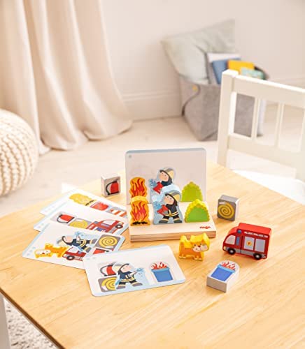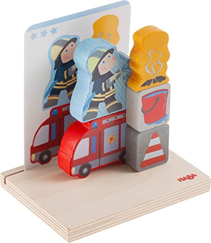 When using the fire brigade it goes underneath and over. Who brings order here? The stacking toy fire brigade from Haba encourages children aged 2 and up to spatial assignment and puzzles. Clip a template card to the stacking board and off you go: depending on the level of difficulty, toddlers place the building blocks next to each other and on top of each other. So the motor skills toy trains spatial thinking and accurate looking. The stacking board ensures a straight and stable base. This guarantees the greatest stacking tasks. Quickly to the next Haba puzzle use!