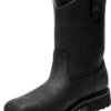 Waterproof full grain leather upper Mesh lining Welt construction Oil and slip resistant outsole ASTM F2413-18 M I C EH compliant with individually fitting left and right safety toe caps Shaft height: 10″, Heel height: 1.5″