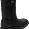 An HD twist on a western work boot classic. Built for the job the Altman work boot has waterproof full grain leather, durable construction, mesh lining, and an oil and slip resistant outsole that makes this boot built to last on even your toughest job. ASTM F2413-18 M I C EH compliant with individually fitting left and right safety toe caps.