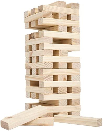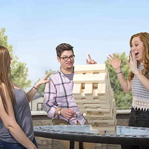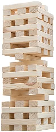 UNIQUE AND CHALLENING TWIST FROM TRADITIONAL STACKING GAMES – Due to the unique size of the wood blocks, 8.25”x2”x1.187”, the game is set up with spaces between the blocks, making it much more challenging than traditional stacking games. The game can stack to over four feet tall, so lots of fun can come tumbling down!