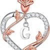 Iefil Rose Heart Necklace Gifts for Women, 925 Sterling Silver Initial Pendant Letter Necklace Jewelry for Women Valentines Day Anniversary Birthday Gifts for Her Wife Girlfriend Mom