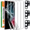 [Flexible Materials & Bubble Free] Please Note: The screen protector is not tempered glass, it is made of premium thermoplastic polyurethane (TPU), a flexible material that can covers the curved edges of the Samsung S22 Ultra, provide maximum protection against scratches. With nano-elastic to prevent screen breakage caused by drops. Small scratches and air bubbles can be repaired automatically within 24 hours because of the use of a High-permeability glue with strong adhesion.