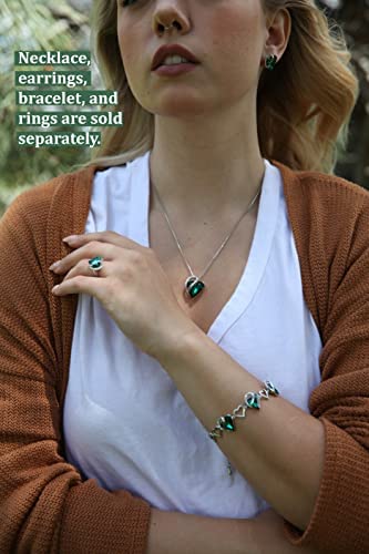 SPECIFICATIONS – Pendant Size: 0.75″ x 0.88″ |Chain Length: 18″+ 2″ |Plating: 18K White Gold Plated Silver-tone | Clasp: Lobster Claw | Stone: Sweet Heart Fancy Stone, Emerald Green; Flatback Zirconia Rhinestones, Crystal AB Color.