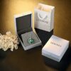 Each jewelry piece is packed with an elegant white, silver-embossed jewelry gift box and gift bag