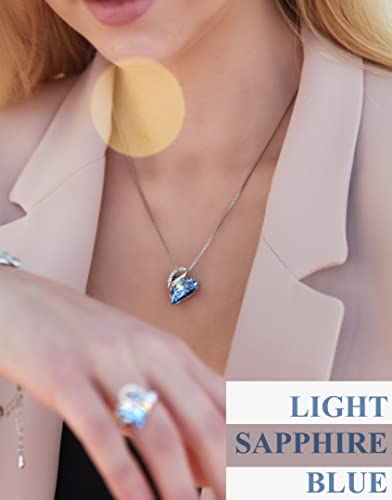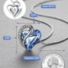 SPECIFICATIONS – Pendant Size: 0.75″ x 0.88″ |Chain Length: 18″+ 2″ |Plating: 18K White Gold Plated Silver-tone | Clasp: Lobster Claw | Stone: Sweet Heart Fancy Stone, Light Sapphire Blue; Flatback Zirconia Rhinestones, Crystal AB Color.