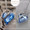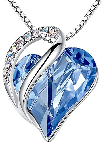 This dazzling Infinity Love pendant features a wild-heart-shaped premium birthstone crystal, embroidered by a silver-tone and shinning ribbon, creating a complex structure that assembles an infinity symbol.