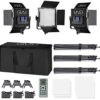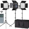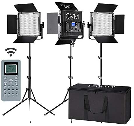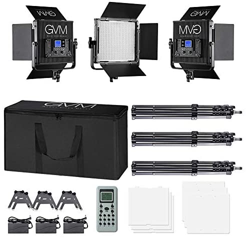 LED Video Light GVM 672S CRI97+ TLCI97+ 22000lux Dimmable Bi-color 3200K-5600K Light Panel With Digital Display For Outdoor Interview Studio Video Making Photography Lighting 3 pcs Kit