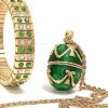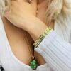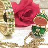 -❤ ❤-Handmade by Master Artisan Jewellers in Cyprus -24k GOLD Hand Embellished jewelry -Swarovski Diamond Green gems Artistically Handset by our master jewellers -Faberge egg Locket pendant 4.5cm x 2cm (1.77″x.78″ ) has magnetic closure -24k Gold decor chain 60cm +9cm extension( 23.5″ + 3.5″) adjustable to your prefered length -96 HANDSET Swarovski Gemstones Bracelet 2ct Deep electroplated 24k GOLD decor -Swarvoski Green symbolises immortality, rebirth freshness and hope.Perfect gift!