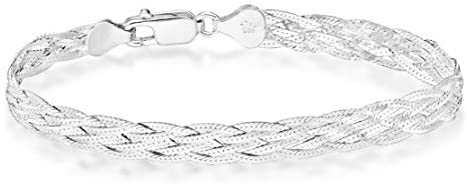 Miabella offers affordable fine jewelry, from cool modern to updated classic designs. Make a chic statement with this solid 925 sterling silver 6-strand braided herringbone chain. A slim style ready to be worn with absolutely everything. Lays flat, smooth and comfortable on the wrist. Made in Italy