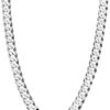 PURE 925 STERLING SILVER & NICKEL-FREE/HYPOALLERGENIC – Made of 92.5% pure sterling silver, this jewelry is a great choice for individuals with very sensitive skin. One of the brightest metals in the world, sterling silver gives your jewelry a brilliant shine. Available in 16”, 18”, 20”, 22”, 24”, 26”, 30”. Necklace, 5/16” wide (7mm). Lobster-claw clasp with spring mechanism for sturdy security.