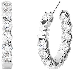 Michael Kors Women’s Stainless Steel Small Hoop Huggie Earrings With Crystal Accents