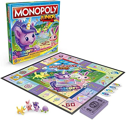 MONOPOLY GAME: UNICORN EDITION: In this Monopoly Junior board game, kids can imagine a magical world and celebrate many kinds of unicorns