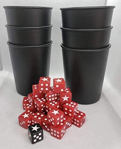The game comes with high quality components: Sturdy dice cups, dice and rubber mat.