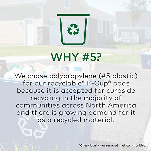 INTRODUCING RECYCLABLE* K-CUP PODS: Simple. Delicious. And now Recyclable. Enjoy the same great-tasting coffee you know and love, and when you’re done just peel, empty and recycle. *Check locally, not recycled in all communities. Packaging may vary.