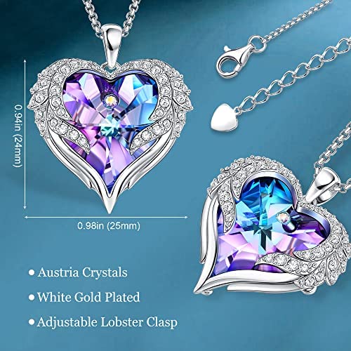 Adjustable chainAnti-allergy & HypoallergenicHigh precision and superb crystal cutting technologyGorgeous design and excellent qualityLovely necklace with sparkling gemAngel wings around the heart symbolize love and happinessPerfect Gift for her on mother’s day