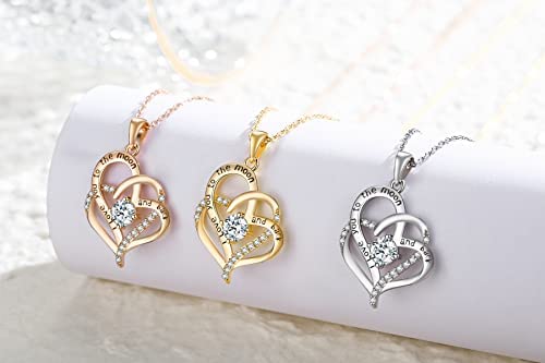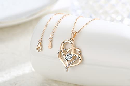 ❤【GIFT BOX】Comes with the charm gift box, perfect for any gift-giving occasion, A love message is engraved on the heart-shaped sterling silver necklace: “I love you to the moon and back” to let her know that you will love her forever.