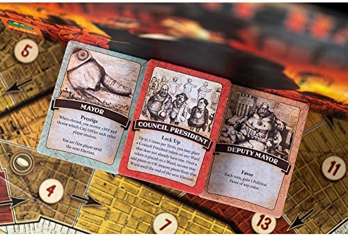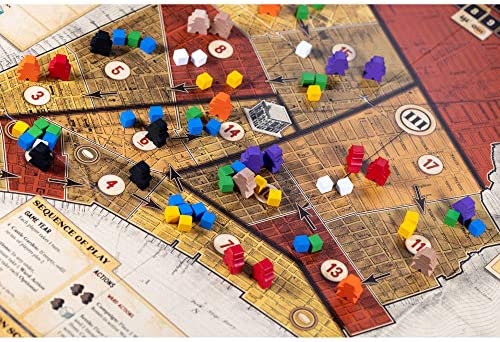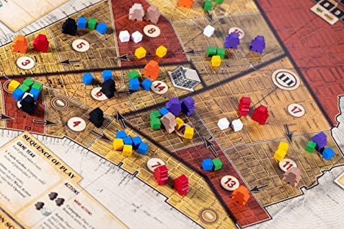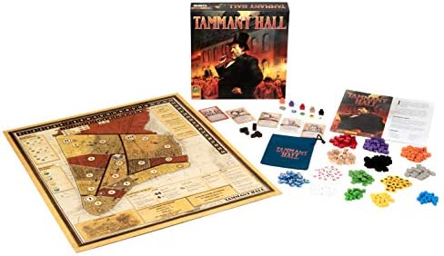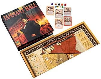 In Tammany Hall, you will use Ward Bosses and Political Favors to drum up votes for your campaign for Mayor of New York City. There are 4 Elections held throughout the game. During each Election, you score Victory Points for each individual Ward where you win the most votes, and for winning the most Wards and being named Mayor. At the end of the game, the player with the highest score wins!