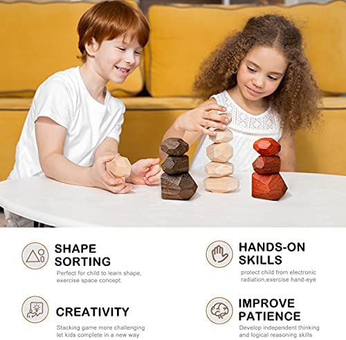 【Expand logical thinking skills】These stone rocks have flat cut surfaces so the stones can be stacked different shapes of stones to the highest, is a great way to challenge and develop their brain skills and promote hands-on activity improve fine motor skills, visual-spatial skills.