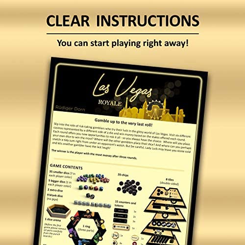 Great replay value – 45-60 minute play time, for 2-5 player, LAS Vegas royale’s innovative game play is easy-to-learn with varying levels of difficulty and the 12 new casinos require different strategies and tactics which creates a different experience Each time you play.