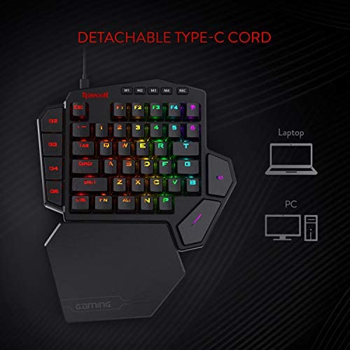 Redragon K585 DITI One-Handed RGB Mechanical Gaming Keyboard, Type-C Professional Gaming Keypad with 7 Onboard Macro Keys, Detachable Wrist Rest, 42 Keys (Black-Blue Switch)