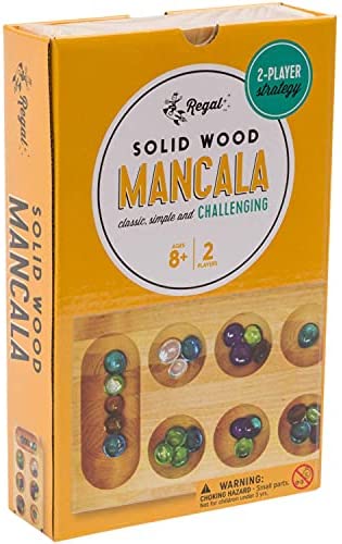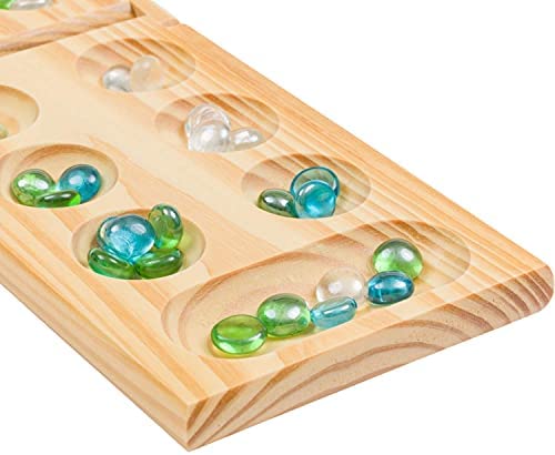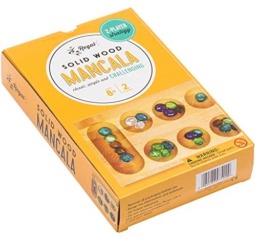 ALL IN ONE SET: The Regal Games Mancala Board Game comes with everything you need to have a good time with family and friends, including a foldable wooden mancala board and 48 multicolored glass mancala stones, which is enough for 2 players