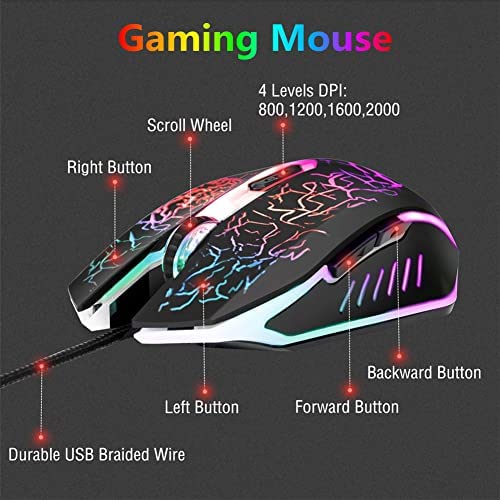 【Gaming Mouse】Colorful back light: 7 Color RGB alternately breathing.6 Buttons,fast response.Durable USB braided wire.4 levels DPI adjustable.