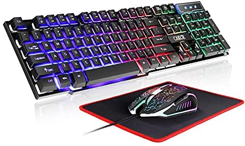 【Gaming Keyboard】All 104 keys use laser carving technology, letter never fade and see-through glow. 19 keys non-conflict.12 Multimedia Keys.Smooth exquisite panel and ergonomic keycap bring comfortable mechanical feeling touch. Keyboard back has 2 stand adjust keyboard height,built-in steel plate make keyboard more steady.