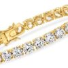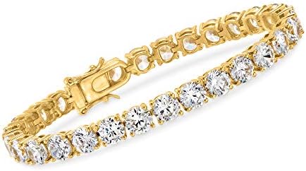 Ross-Simons travels the world to find beautiful, high-quality styles at the best prices. Experience fine, affordable luxury. With 23.00 ct. t.w. round brilliant-cut CZs, this tennis bracelet will keep them all guessing. Set in 18kt yellow gold over sterling silver. Double latch safety. Box clasp, CZ tennis bracelet. CZ weights are diamond equivalents. Each Ross-Simons item arrives in a fine jewelry presentation box.