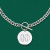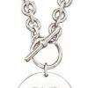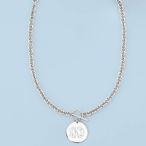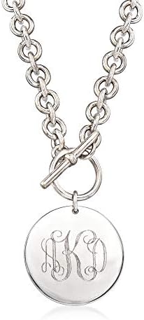 Ross-Simons is the authority on luxury classics. This sterling silver necklace features a polished disc which can be engraved FREE in both script or block type. The toggle clasp as the closure is situated in the front above the smooth dangling disc, for a simple yet appealing look. Suspends from a sterling silver cable chain. Sterling silver disc necklace. Necklace drop length – 1 1/8 inches long. Necklace drop width – 1 inch wide. Each Ross-Simons item arrives in a fine jewelry presentation box.