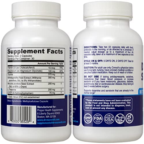 Superior formula and value. If bought separately, dopamine & serotonin support supplements cost between 60 and 110$. Single ingredient supplements such as Mucuna Pruriens (dopamine booster) or 5 HTP (serotonin booster) are even worse value. Dr Maxwell’s 4-in-1 formula provides you with 1) dopamine precursors, 2) serotonin precursors, 3) nutrients for mood & relaxation and 4) focus & brain support complex and comes at a superior value*