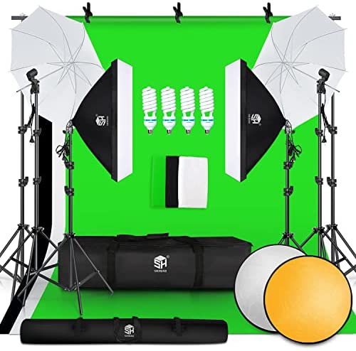 SH Photography Studio Lighting Kit 8.5 x 10 ft Background Support System Backdrop Umbrellas Softbox Continuous Lighting Kit