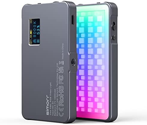【Universal and light to carry】simorr RGB camera light is 108*60*11mm, weighing 117g, you can carry it with one hand, it is a must-have item in your camera bag. Standard 1/4 screw for tripod with cold shoe mount for camera or DSLR camera,for Nikon, Sony, Canon, Fuji, Panasonic, etc.