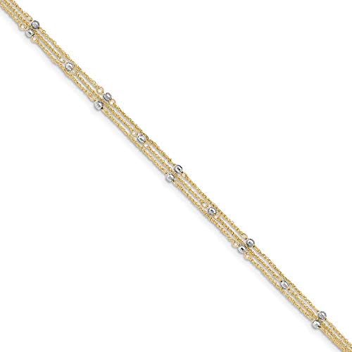 Your satisfaction is our top priority at Sonia Jewels – Solid 14k Yellow and White Gold Two Tone Triple Strand Anklet 9″