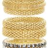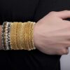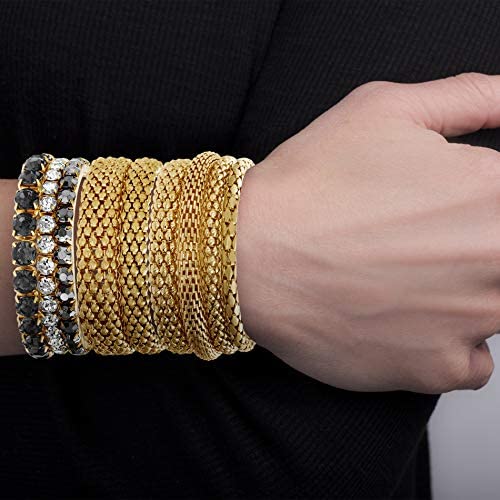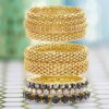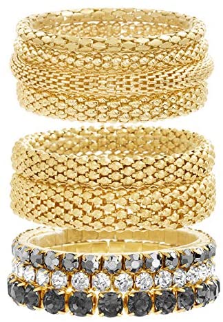 DESIGN FEATURE: This Chic and Trendy STEVE MADDEN Yellow Gold Tone and Black Rhinestone Stretch Bangle Bracelet Set For Women