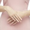 Minimalist and unique: The Attract ring features an eye-catching and elegant circle-cut white crystal with matching crystal pavé laid on a delicate rhodium finish band
