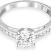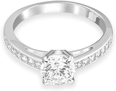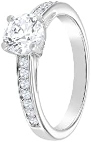 Items delivered: (1) Swarovski Attract ring for women, white circle-cut crystal with matching pavé on a rhodium finish band, size 50, complete with Swarovski ring box