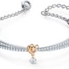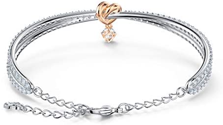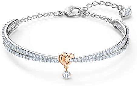 Items delivered: 1 x Swarovski Lifelong Heart bangle with white Swarovski crystals and rose-gold tone and rhodium plated mixed metal, 2 1/4 x 1 3/4 inches, with Swarovski bracelet box